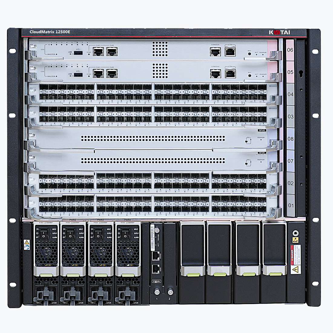 CloudMatrix 12500E 系列智能路由交换机(简称CM12500E)是面向 Wi-Fi 6 全无线时代高端园区网络推出的全新一代旗舰级核心交换机,整机最大可给予 288*100GE/40GE 或 480*25GE 或 576*10GE/GE 端口,同时配套 CloudMatrix6530 及 CloudMatrix5530 系列交换机,可满足不同网络规模或应用场景的建网需求。